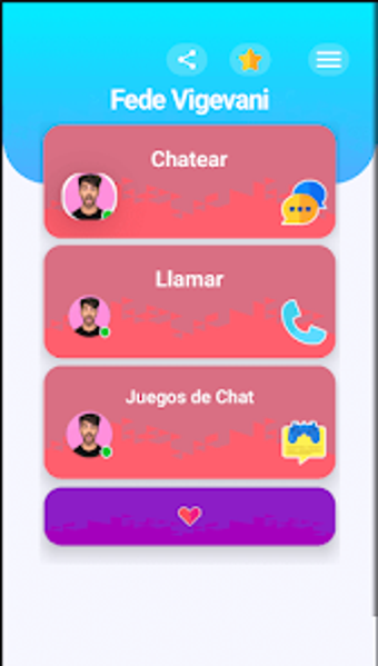 Fede Vigevani fake - Chat Call adalah aplikasi interaktif yang dirancang untuk penggemar Fede Vigevani. Aplikasi ini menawarkan pengalaman chatting yang menyenangkan dengan pesan-pesan lucu serta permainan tebak angka yang bisa dimainkan dalam obrolan. Pengguna dapat berinteraksi seolah-olah berbicara langsung dengan Fede Vigevani, membuatnya ideal untuk bersenang-senang atau menjahili teman-teman.